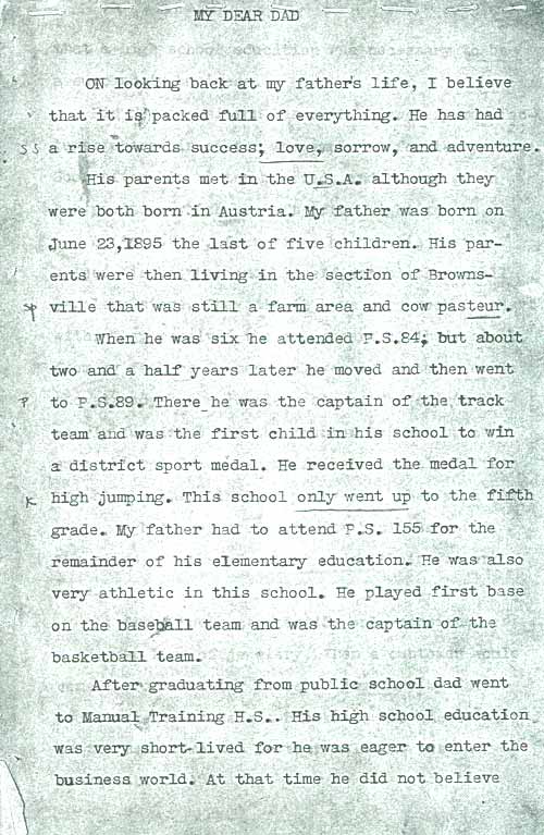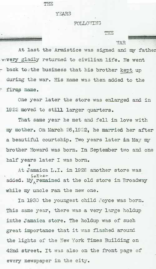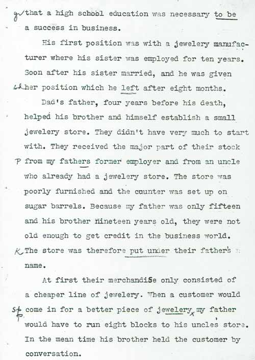 The following paper was written in 1941 by Corrine Gross, the sister of Howard Gross who was the third generation of H.L. Gross & Bro. Jewelers. The paper was written as a high school assignment and is a very interesting read, providing a chronology of our business and how it started way back in 1910.