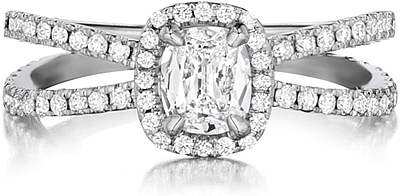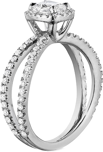 This diamond engagement ring setting by Henri Daussi features round brilliant cut diamonds pave set along a split shank as well as around the center stone of your choice. (H14)
