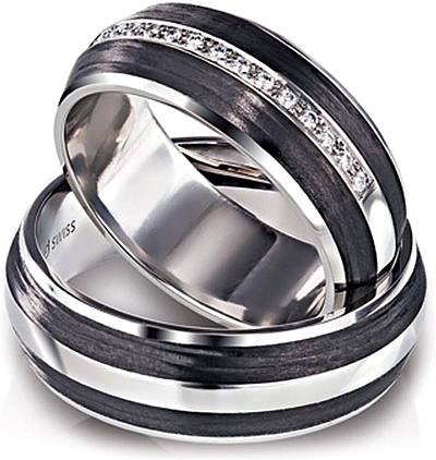 This wedding band by Furrer Jacot features small strands of carbon fiber tightly wrapped around for a unique and modern look. Currently priced without diamonds. Please call for pricing on diamond version.