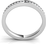 A classic style features round brilliant cut diamonds that are channel-set half way around the band.