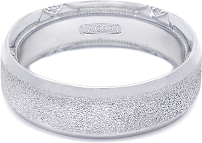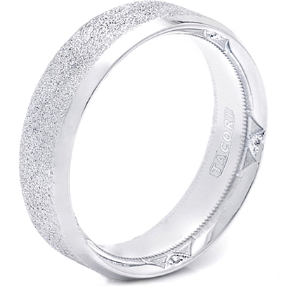 Discover a Passionate union of wedding bands for him and her. Bind your future as a couple with this wide band featuring 0.03 carats of G,VS diamonds. It adjoins mirror-smooth high-polished metal with a hardy pebbled finish. Very subtle diamond pave accentuates Crescent Silhouette details on just the interior of the band.