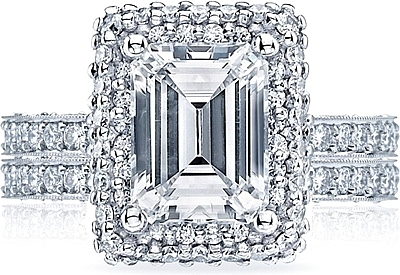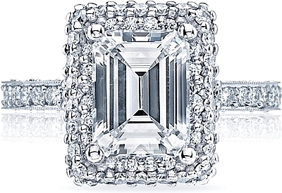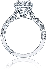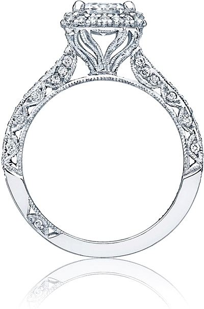 A botanical-inspired sweetheart carriage makes this ring absolutely unique, with diamond crescents and supple strings of diamonds arching down the sides for a definitive, sophisticated look.