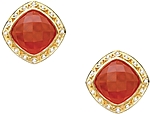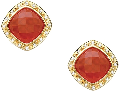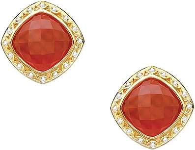 Translucent quartz creates a sensational doublet layered over fierce red Onyx. Diamond crescents ignite an 18k gold frame for a dazzling pair of stud earrings.