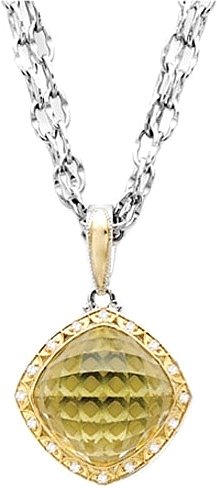 Lemon Quartz is a feminine focus of this radiant pendant, featuring an 18k gold frame and precious diamond crescent details.