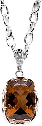 Toasted tones of deep mocha-hued Smokey Quartz meld with the feminine color of rich 18k rose gold on a sculptural silver bezel. The unique elongated cushion-cut stone drapes across the neck on a luxurious link chain, fastened with the Tacori seal toggle.