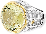 Luscious Lemon Quartz is the focus of this .925 silver woven crescent basket ring with warm hued 18k gold adding flair and style.