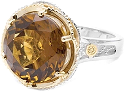 Cognac Quartz is the focus of this blossoming ring. With a slender, sculptural shank 18k golden details add interest and intrigue from all angles.
